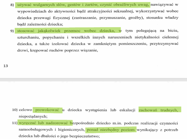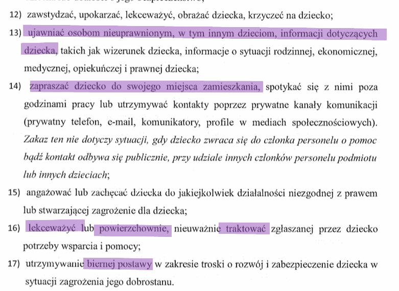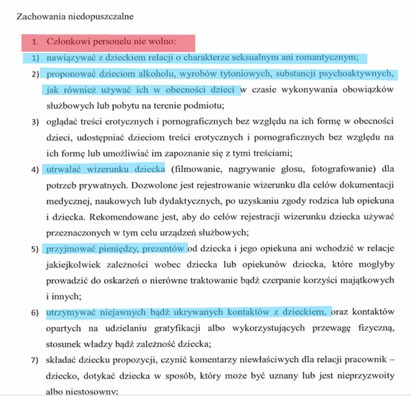 ZACHOWANIA/CZYNY ZABRONIONE-STANDARDY OCHRONY DZIECI DLA SPZOZ KORONOWO