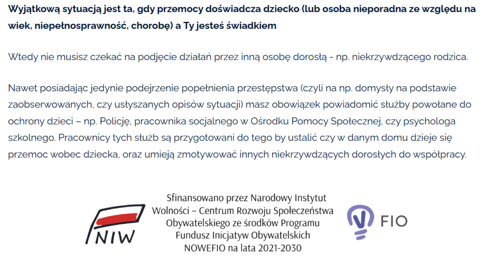 - JEŚLI WIDZISZ, ŻE DZIECKO MOŻE BYĆ KRZYWDZONE OFERUJ MU WSPARCIE I ZROZUMIENIE