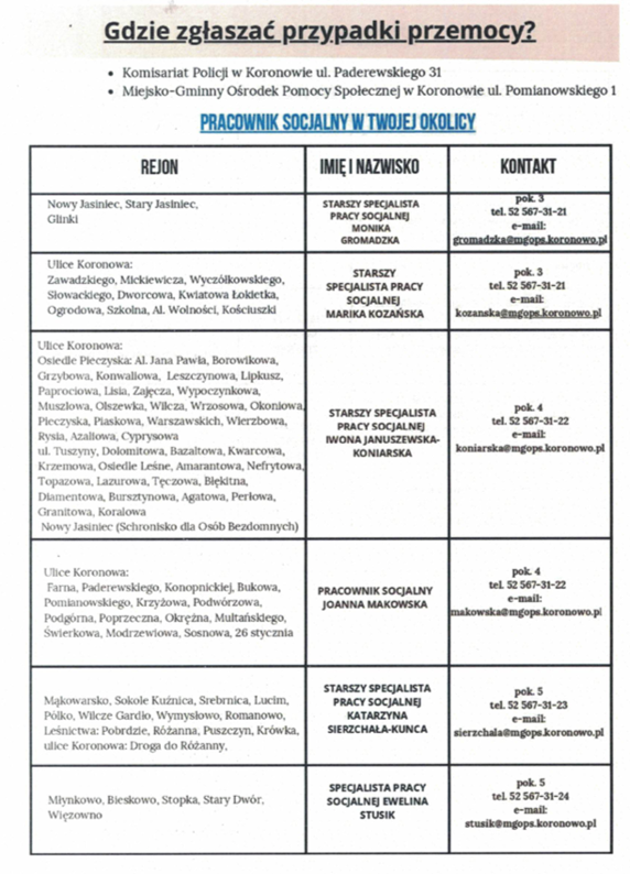 - Jeśli wiesz lub podejrzewasz, że dziecko jest krzywdzone zgłoś sprawę do koordynatora SPZOZ Koronowo ds. zapoobiegania krzywdzeniu małoletnich-Paulina Kołutkiewicz (w przypadku nieobecności koordynatora, przekaż zgłoszenie osobie zastępującej, wyznaczonej przez przełożoną pielęgniarek i położnych)